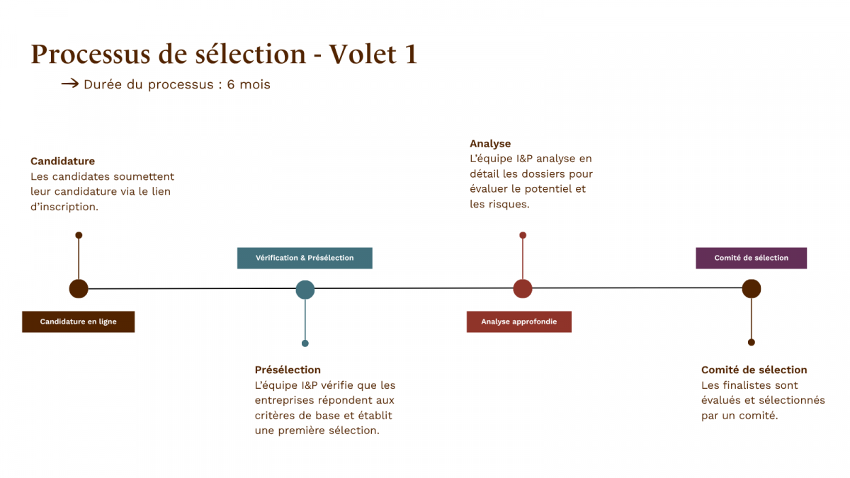 Diagnostic, analyse financière et marché, e-learning ESG, et co-création puis mise en œuvre du Value Creation Plan, avec mentorat par les fonds partenaires et experts externes.