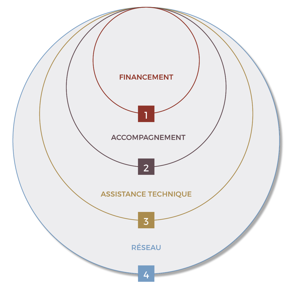 3. Les ressources pour l’assistance technique sont levées auprès des investisseurs du fonds et autres organisations offrant des subventions. Elles sont utilisées en développement de compétences, transfert de savoir-faire et formations.